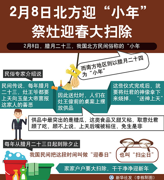 图表:2月8日北方迎“小年” 祭灶迎春大扫除 新华社发 李栋 制图
