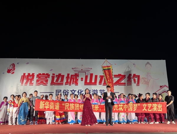 新华街道:为丰富基层群众文化生活,促进各民族交往交流交融,新华街道常青藤艺术团在图们江广场开展“民族团结一家亲 同心共筑中国梦”专场文艺演出,赢得辖区各族群众的阵阵喝彩。