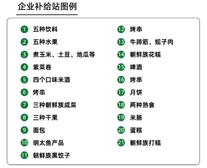 常见的补给:饮料、水果、玉米、土豆、地瓜等;