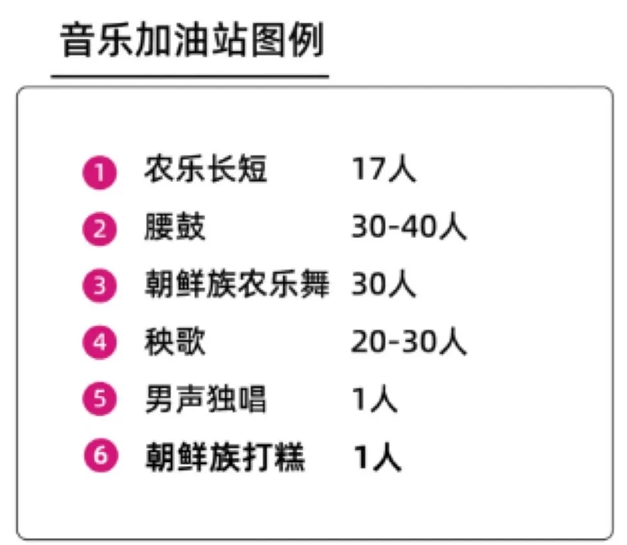 光有吃的好怎么能满足呢,精彩的娱乐活动也有安排上。朝鲜族腰鼓、农乐舞、东北秧歌等,精彩纷呈。