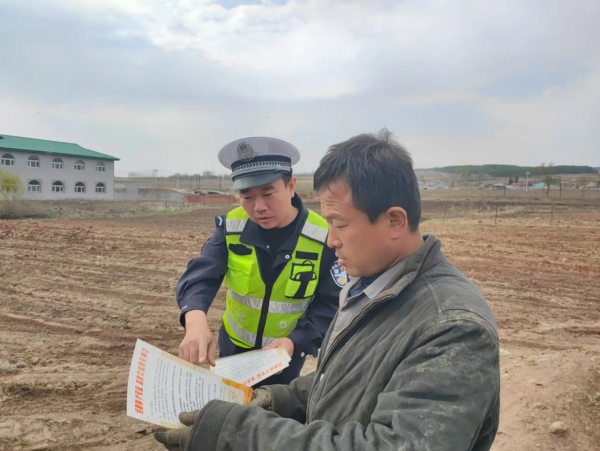 当前正值春耕备耕关键时期,为提升农村群众交通安全意识,预防和减少道路交通事故发生,近日,延吉市公安局交巡警大队依兰中队组织警力深入农村田间地头,开展“春耕生产”交通安全宣传活动,为农民群众送上“安全锦囊”。