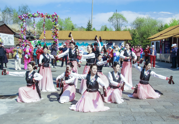 百花谷朝鲜族古村落景区内游人如织、人头攒动。县文化馆20余名演职人员,将非遗展示的舞台搬进景区,在游客们畅游之际,表演了富有朝鲜族民俗特色的伽倻琴独奏、牙拍舞、鹤舞、象帽舞等节目。悠扬的琴声、灵动的舞姿,为景区增添了浓厚的文化氛围,也让游客们沉浸其中,多了一份别样的游玩体验。“这次亲身感受了一下朝鲜族的文艺表演,很有特色,非常精彩。”游客周先生表示。