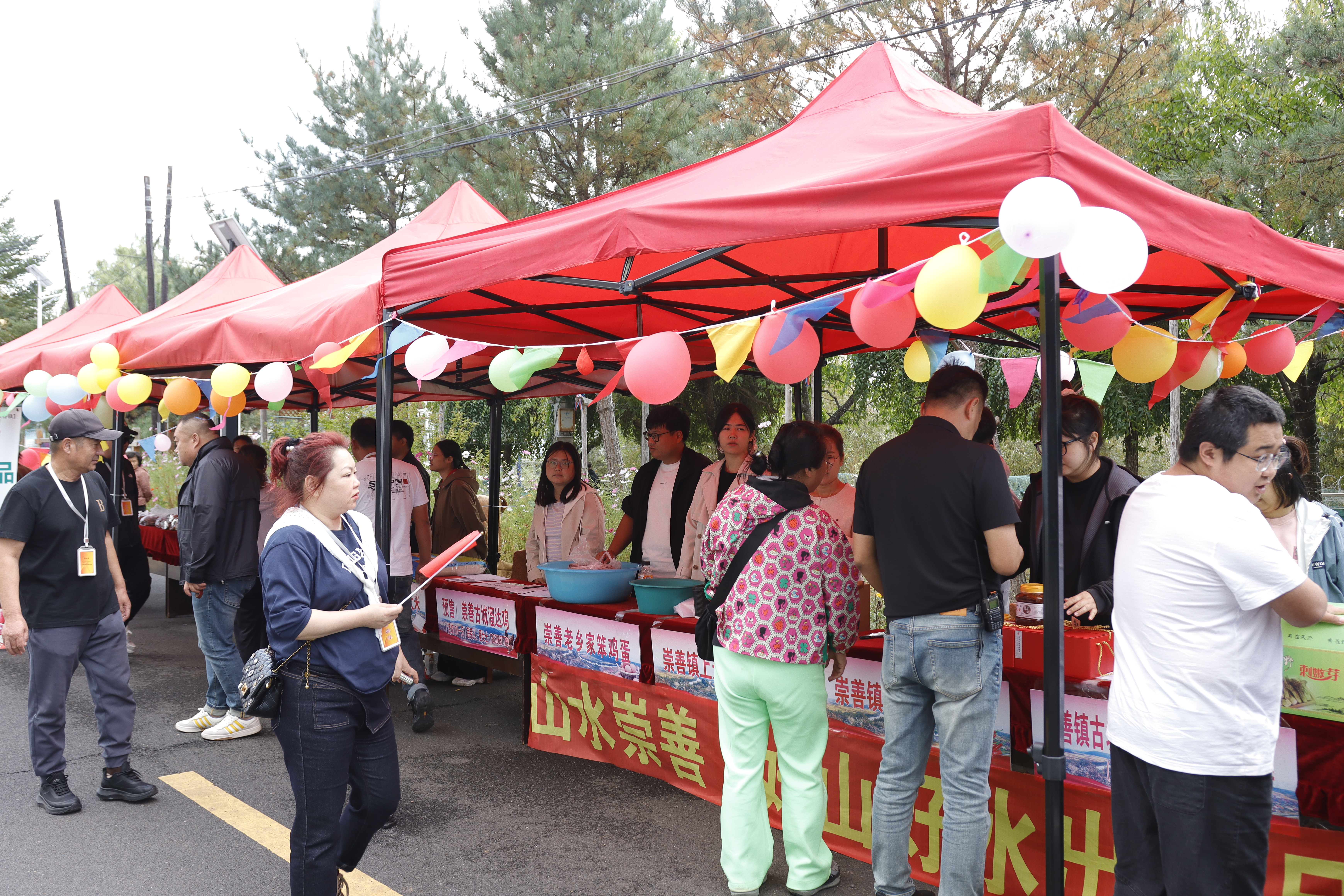 一旁的农特产品大集同样人气高涨。上天村辣椒酱、崇善送伞蘑、富硒大米等本地好物琳琅满目,游客争相选购。大家携一份特产而归,也带走了崇善的淳朴风情,实实在在带动了本地消费。