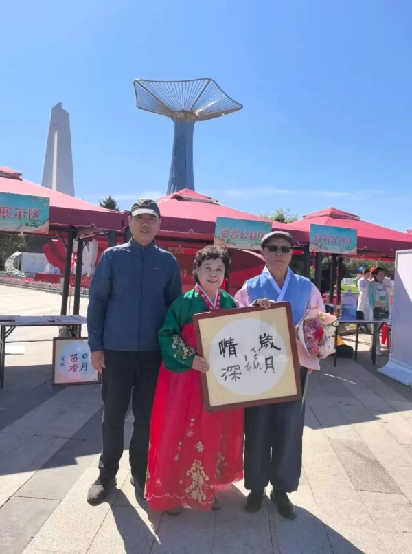 金婚典礼礼成后,随即启动的“提振消费 乐淘银龄”银龄欢乐大集设立健康问诊、美食品鉴、产品展销、慈善公益、书法展示及政策宣传等多元展区,其中图们市中医院为老年人提供免费义诊、文联为6对金婚夫妻提供了书法题字等一站式体验服务,充分彰显银发经济的活力与潜力。