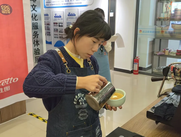 比赛采用1vs1淘汰制,全程聚焦创意拉花核心环节。比赛现场,浓郁的咖啡香气弥漫全场,选手们神情专注、手法娴熟,将灵动创意融入每一次奶泡打发与融合,一个个兼具美感与个性的拉花图案在杯中次第绽放,赢得现场观众阵阵喝彩。