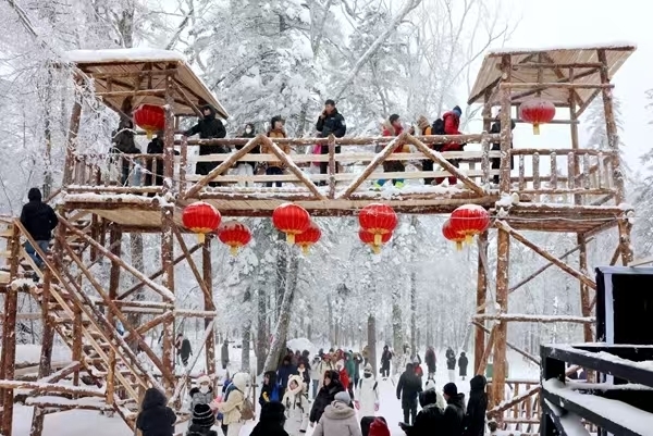 刚进景区就会被满坡的“水晶树”惊艳!针叶林裹着蓬松的雾凇,每根枝桠都坠着冰晶,走在林间,阳光穿过枝叶洒下“星星雨”,抬手就能接住飘落的雪绒。偶遇玩雪的小朋友摇晃树枝,瞬间扬起漫天雪雾,快门随便按都是电影感画面,连呼出的白气都像在和冰雪打招呼~