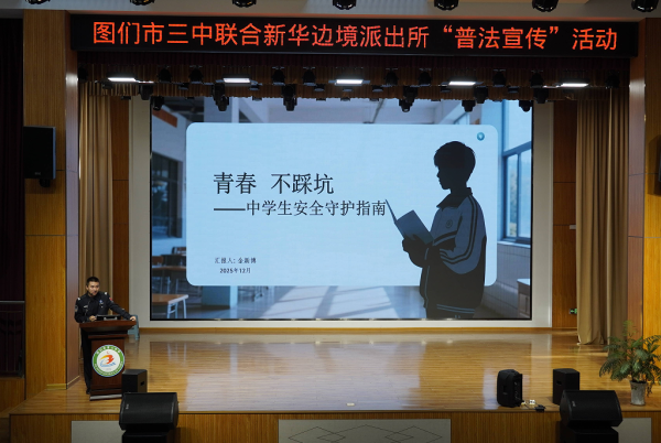 为切实强化未成年人安全防护意识,筑牢校园安全防线,近日,图们市新华边境派出所联合市三中开展“法治进校园”主题宣传活动。