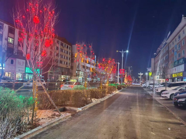 如今,走进和龙,处处是亮眼景致:红太阳广场、政府广场精心设置 “我在和龙等你”“万福树” 等网红打卡点,成为市民游客拍照留念的热门地;主干道两侧悬挂起传统红灯笼与红石榴造型灯饰,搭配璀璨的满天星灯带,让现代元素与传统文化完美交融;沿街树木缠绕着温暖的灯串,与建筑轮廓灯交相辉映,夜幕下尽显 “火树银花不夜天” 的动人景致,将节日的喜庆氛围拉满。