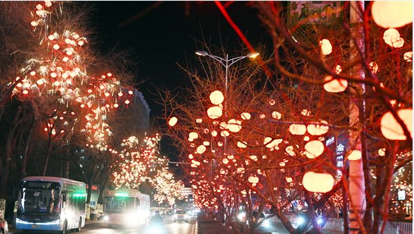 傍晚时分,漫步延吉街头,仿佛踏入了一个梦幻般的光影世界。形态各异的彩灯在夜幕中散发着迷人的光彩,将整个街道装点得如诗如画。