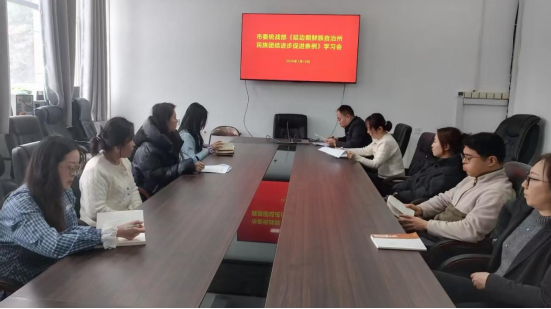 为深入贯彻习近平总书记关于加强和改进民族工作的重要思想,全面落实州委关于“加快打造延边民族团结进步升级版”的工作部署,近日,龙井市委统战部组织召开《延边朝鲜族自治州民族团结进步促进条例》(以下简称《条例》)专题学习会。市委统战部领导班子成员、全体干部职工参加学习。