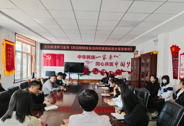 为深入贯彻新时代党的民族工作方针,切实铸牢中华民族共同体意识,和龙市文化街道组织所辖社区干部、辖区企事业单位代表及居民骨干,专题学习《延边朝鲜族自治州民族团结进步促进条例》(以下简称《条例》),并结合街道实际,有序开展相关学习工作。