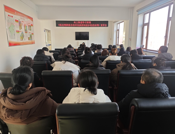 为深入落实州委统战工作领导小组相关部署要求,学习贯彻《延边朝鲜族自治州民族团结进步促进条例》(以下简称《条例》),夯实基层民族团结进步工作根基,1月27日,图们市向上街道召开《条例》学习宣讲会,街区班子成员、机关社区干部70余人参加。