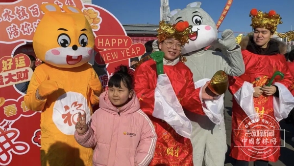 集市上,人群中不时传来阵阵喧哗。身着喜庆红袍、头戴官帽的“财神爷”沿着市集主干道巡游,面带笑意,与来往群众热情互动。福字一张张递到摊主和赶集人手中,“新春大吉”“财源广进”的祝福声此起彼伏。不少人举起手机争相合影,一位大爷接过福字,端详了一下,小心卷好放进大衣内兜:“回去贴大门上。”
