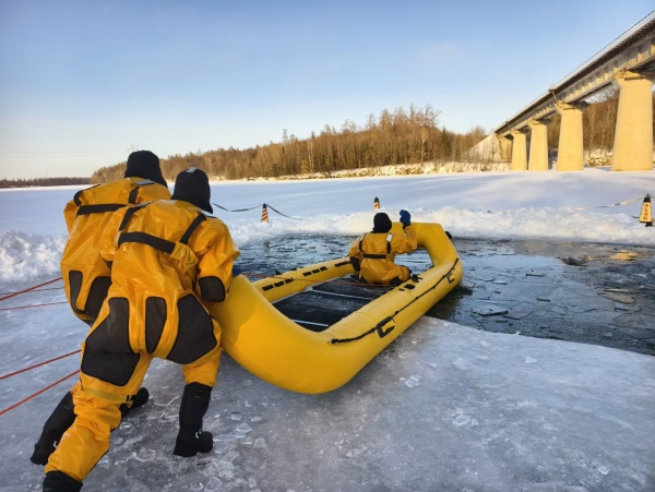 实战实训,锻造救援尖兵。针对冰面事故突发性强、施救时限紧迫、技术要求高、救援难度大的特点,支队重点对冰面探测、冰上自救、锚点制作、抛绳包救援、漂浮船救援等科目进行训练。训练中,支队各级上下联动,合理设置实景险情,模拟开展实战化救援演练,全面提升队伍协同救援与应急处置能力。