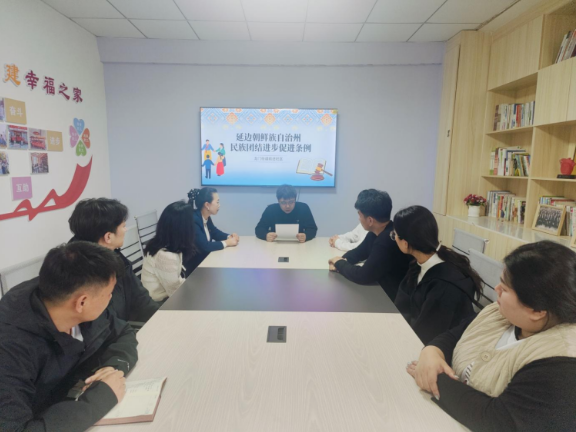 为深入贯彻落实习近平总书记关于加强和改进民族工作的重要思想,扎实推进民族团结进步创建工作,4月9日,龙井市龙门街道前进社区开展《延边朝鲜族自治州民族团结进步促进条例》(以下简称《条例》)学习活动。