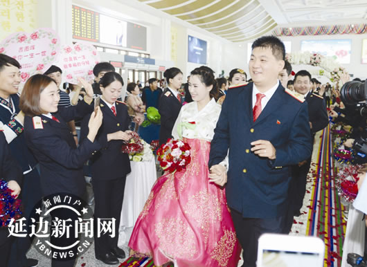 这是延吉车务段有史以来的第一次集体婚礼。延吉车务段工会主席薛峰说,举办这个活动有3个意义,第一是真诚地想把这些孩子留在高铁工作、扎根边疆,为延边人民提供更好的服务;第二是吸引更多的青年投入到铁路建设中来;第三是向全社会展示高铁的魅力。