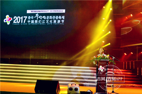 在热烈的掌声中,中共图们市委副书记、市长赵永浩走上舞台,发表了热情洋溢致辞。他首先代表中共图们市委、图们市人民政府以及全市各族人民群众,向参加本次盛会的领导和来宾表示热烈欢迎。他说,本届文化旅游节将继续突出“生命之江,希望之门”这一主题,不断丰富和完善“图们江文化论坛、经贸洽谈、中国朝鲜族艺术汇演”等特色品牌活动,坚持以“文化旅游”为媒,助推图们经济发展,进一步提升“中国图们江文化旅游节”的品牌影响力和知名度。热情好客的图们人民热忱欢迎四海宾朋到图们观光旅游、投资兴业,携手共创更加美好辉煌的明天!愿多彩的图们带给大家全新的感受,愿图们江之行给大家留下美好难忘的回忆。