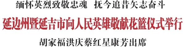 敬献花篮仪式由州委常委、延吉市委书记王吉宝主持。州级有关领导,驻延部队主要负责同志,州委、州政府相关副秘书长,以及老战士、老同志、烈士家属代表、党政机关干部、学校师生、公安干警、社会各界群众代表参加仪式。