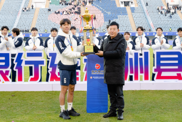 在随后举行的颁奖仪式上,胡家福为延吉市代表队颁发了冠军奖杯;延边足球名宿金光柱、张延矛、白胜虎,延边龙鼎足球队主教练李基珩、延边龙鼎足球队领队许波、延边州球迷协会会长高元哲,分别颁发了亚军季军奖杯、优秀赛区奖、最佳射手奖、公平竞赛奖、优秀球迷组织奖。接过沉甸甸的奖杯,运动员们难掩激动、振臂庆祝,看台上掌声不断、呐喊如潮,欢呼声汇聚成一片沸腾的欢乐海洋,将现场氛围推向高潮。