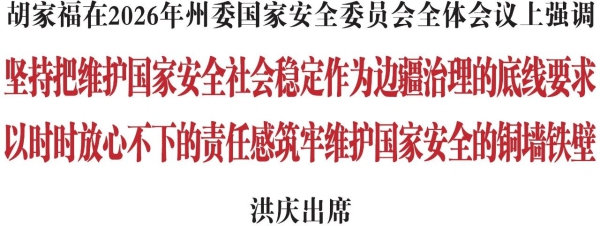 4月15日,省委常委、州委书记、州委国家安全委员会主任胡家福主持召开2026年州委国家安全委员会全体会议。他强调,要深入贯彻习近平总书记关于总体国家安全观的重要论述和在听取吉林省委、省政府工作汇报时的重要讲话精神,牢牢把握边疆民族地区面临的复杂形势、肩负的职责使命,坚持把维护国家安全和社会稳定作为边疆治理的底线要求,以时时放心不下的责任感筑牢维护国家安全的铜墙铁壁。会议听取了国家安全重点领域工作情况,州委副书记、州长、州委国家安全委员会副主任洪庆出席会议。
