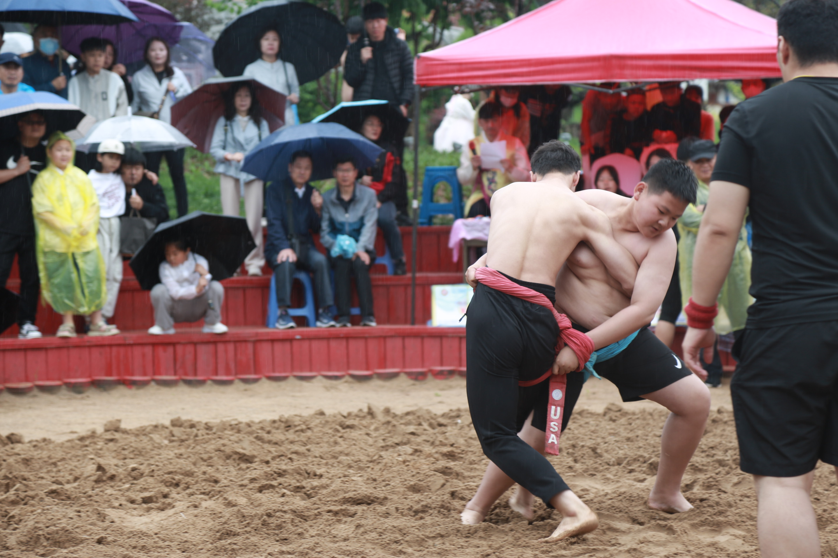 尽管当天上午下着雨,但丝毫没有影响市民和游客们观看比赛的热情。随着主持人宣布比赛正式开始,在现场激昂的乐器声和围观群众的助威呐喊声中,选手们很快投入状态,使出浑身解数互相较量,为大家呈上了一场精彩的摔跤比赛。