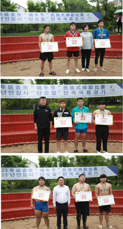 经过激烈的比拼,金光俊、申海龙、王敬涵分别获成人组62公斤以下前三名,俞泽军、金哲、金权一分别获成人组87公斤以下前三名,方裕盛、崔智星、姜权分别获成人组87公斤以上前三名。