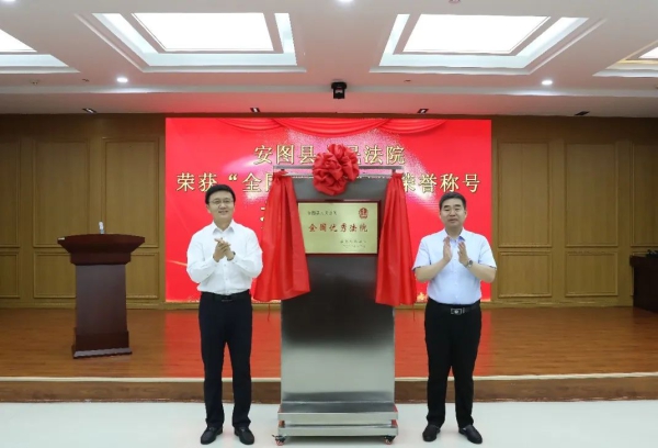 7月6日,安图县人民法院举办“全国优秀法院”揭牌仪式。延边州中级人民法院党组书记、院长朴永刚,安图县委书记王吉宝,安图县人大常委会党组书记、主任尹东杰,政协安图县委员会党组书记、主席董振国,延边州中级人民法院党组成员、副院长冷立新,安图县委常委、政法委书记元哲龙,安图县副县长孙羚哲,安图县人民法院党组书记、院长曹文吉出席仪式。