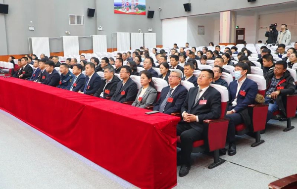 县领导王吉宝、郑哲、尹东杰、董振国、朴日路、王跃、裴海涛、金明花、严明哲、柯成杰在主席台前排就座。