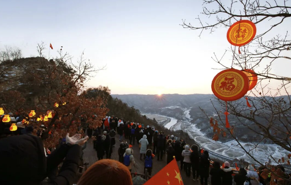 清晨6时,市民游客齐聚老虎岭,手持红旗与荧光棒,踏上被点亮的“祈福之路”。6时30分左右,众人抵达主峰观景台,共候新年第一缕曙光。旭日初升时,市文化馆表演农乐长短《日出照边疆,农乐耀晨光》,并举行“迎新击鼓”仪式,寓意辞旧迎新、国泰民安。现场还设置“心愿墙”,供人们许下新年愿望。