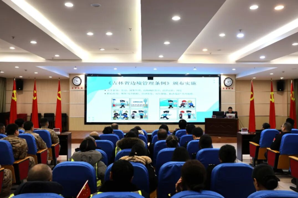 1月6日,图们市委宣传部联合图们出入境边防检查站举办“国门讲堂”边境宣讲活动。活动以学习宣传贯彻党的二十届四中全会精神为核心,邀请海关关员、边检干警、民兵、护边员等共同参与,进一步铸牢中华民族共同体意识,增强干警群众爱国戍边、稳边固边、主动投身图们社会经济发展的思想根基。