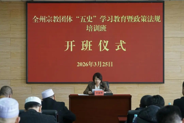 州宗教事务局副局长李丽娜表示,在宗教界深入开展“五史”学习教育、加强宗教政策法规学习,有助于引导宗教教职人员树立正确的国家观、历史观、民族观、文化观、宗教观,深刻理解坚持我国宗教中国化方向的内涵,切实增强对伟大祖国、中华民族、中华文化、中国共产党、中国特色社会主义的认同,积极服务中国式现代化建设大局。培训要求宗教团体班子成员要做深化学习的“带头人”,先学一步、学深一层,积极宣传普及“五史”知识和政策法规,营造学习守法的良好氛围;要做法治建设的“践行者”,牢固树立法治观念,严格在法律政策框架内开展宗教活动,运用法治思维处理宗教事务;要做社会和谐的“促进者”,引导信众增强“五个认同”和中华民族共同体意识,挖掘教义中契合社会和谐的内容,搭建交往交流平台;要做中国化道路的“探索者”,结合当代中国发展进步要求和中华优秀传统文化,对教义教规作出符合时代精神的阐释,积极探索宗教与社会主义社会相适应的实践路径。